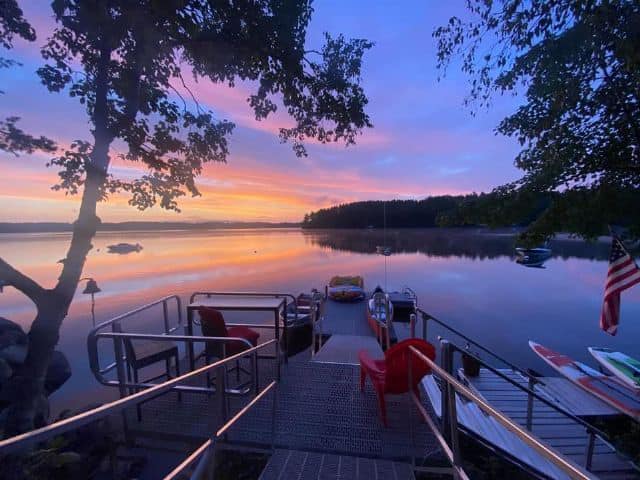 Season 8, Episode 808: I Get By With A Little Help From My Froggy Friends Maine Cabin Masters newly remolded camp. Camp sits literally at waters edge, 300ft of shoreline, 60 foot dock for boating, fishing, ice fishing, ice skating, snow mobile & ATV trails accessible. 4 Ski resorts nearby Saddle back, Sugarloaf, Lost Valley & Sunday River. Beautiful fire pit for star gazing & marshmallow cooking. Great for all outdoor activities. Make some memories at this unique and family-friendly camp.